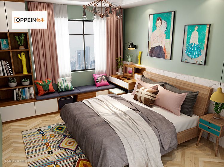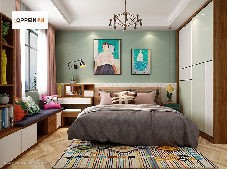 窗户边定制多功能柜,柜体涵盖了立柜、梳妆台、飘窗地柜等。飘窗地柜还可增加坐垫,秒变沙发,把飘窗布置成一个休闲放松的空间,平时周末闲暇之余还能坐在这上面看看书,晒晒太阳。