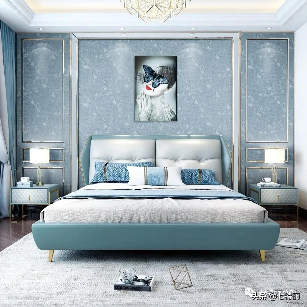 1、卧室墙布颜色——蓝色、绿色