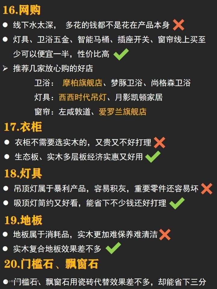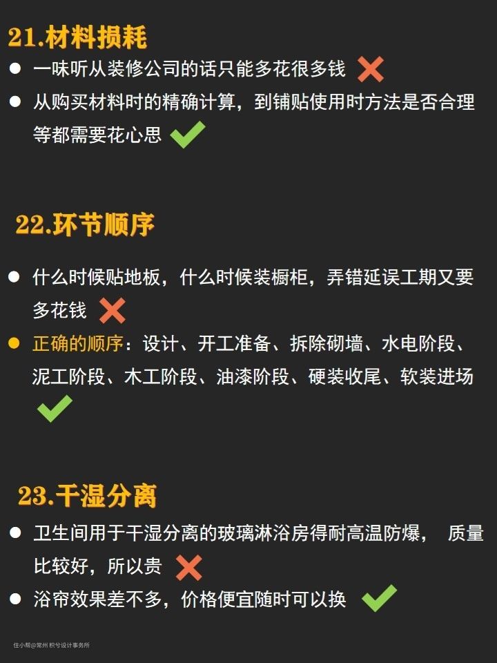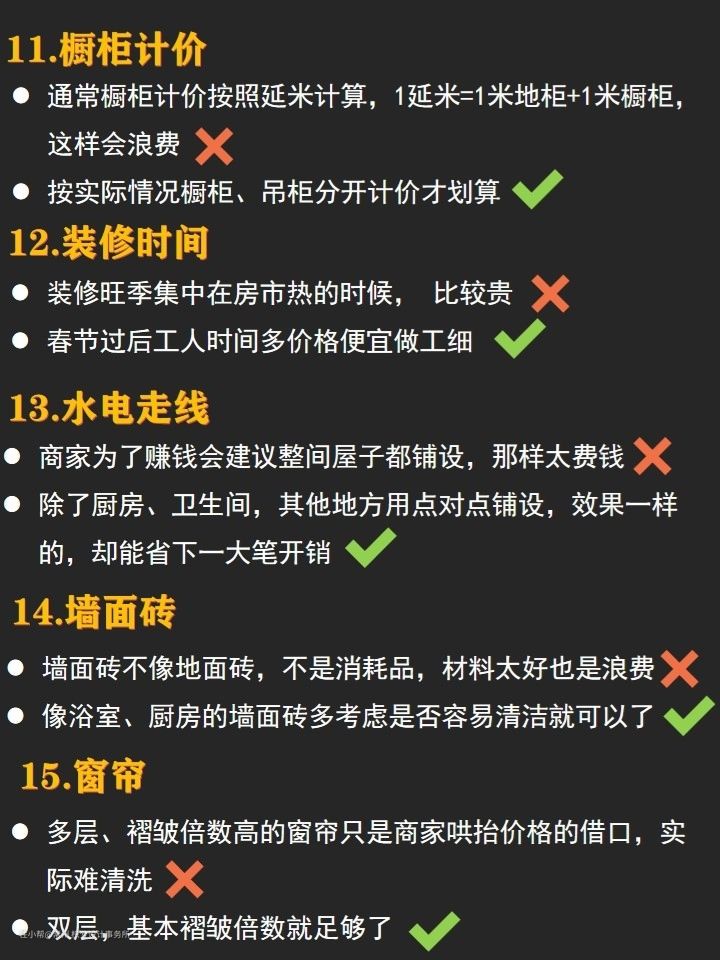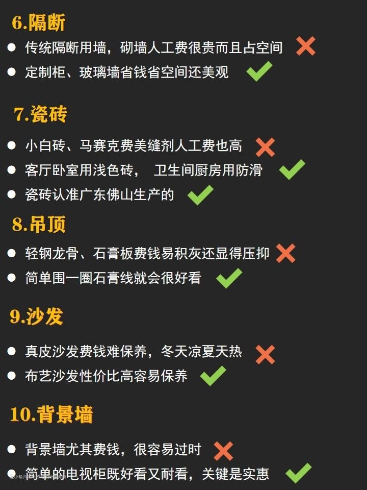 为了大家装修更加轻松明了,我将每个项目的材料以及购买材料的注意事项,都总结了出来啦,详细还是看图哦,希望大家看完可以对半包有所了解~