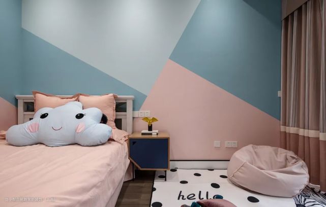 儿童房的色彩整体原则应该是素雅温馨的,尽可能使用能舒缓眼睛的颜色。