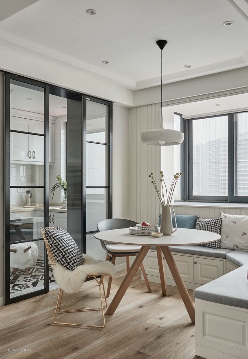 以透明玻璃隔开空间,既延伸了空间视觉,又最大化地将光线保留到室内,使空间更加宽敞明亮、舒张通透。