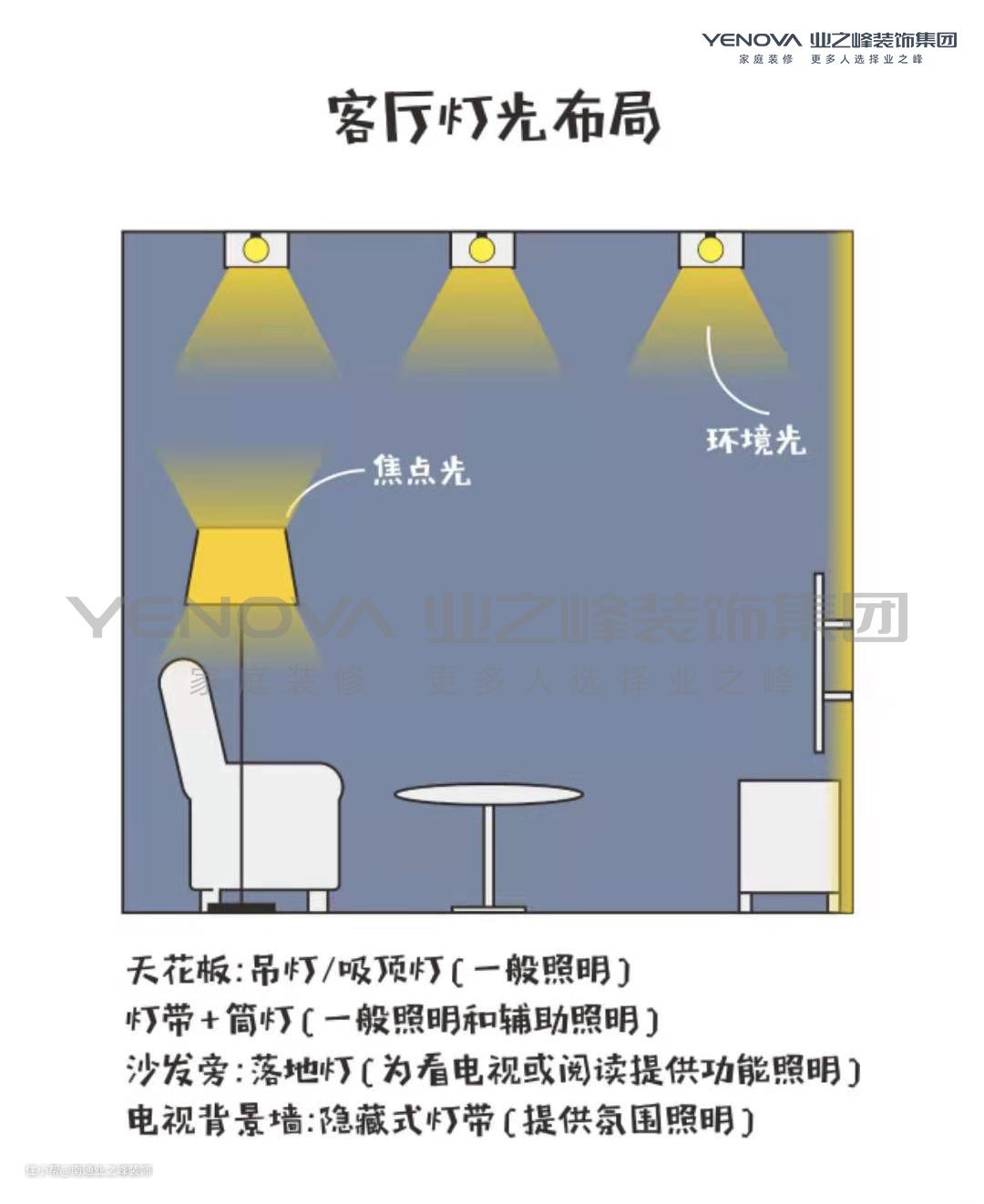 客厅=吊灯+筒灯+射灯+落地灯/轨道灯
