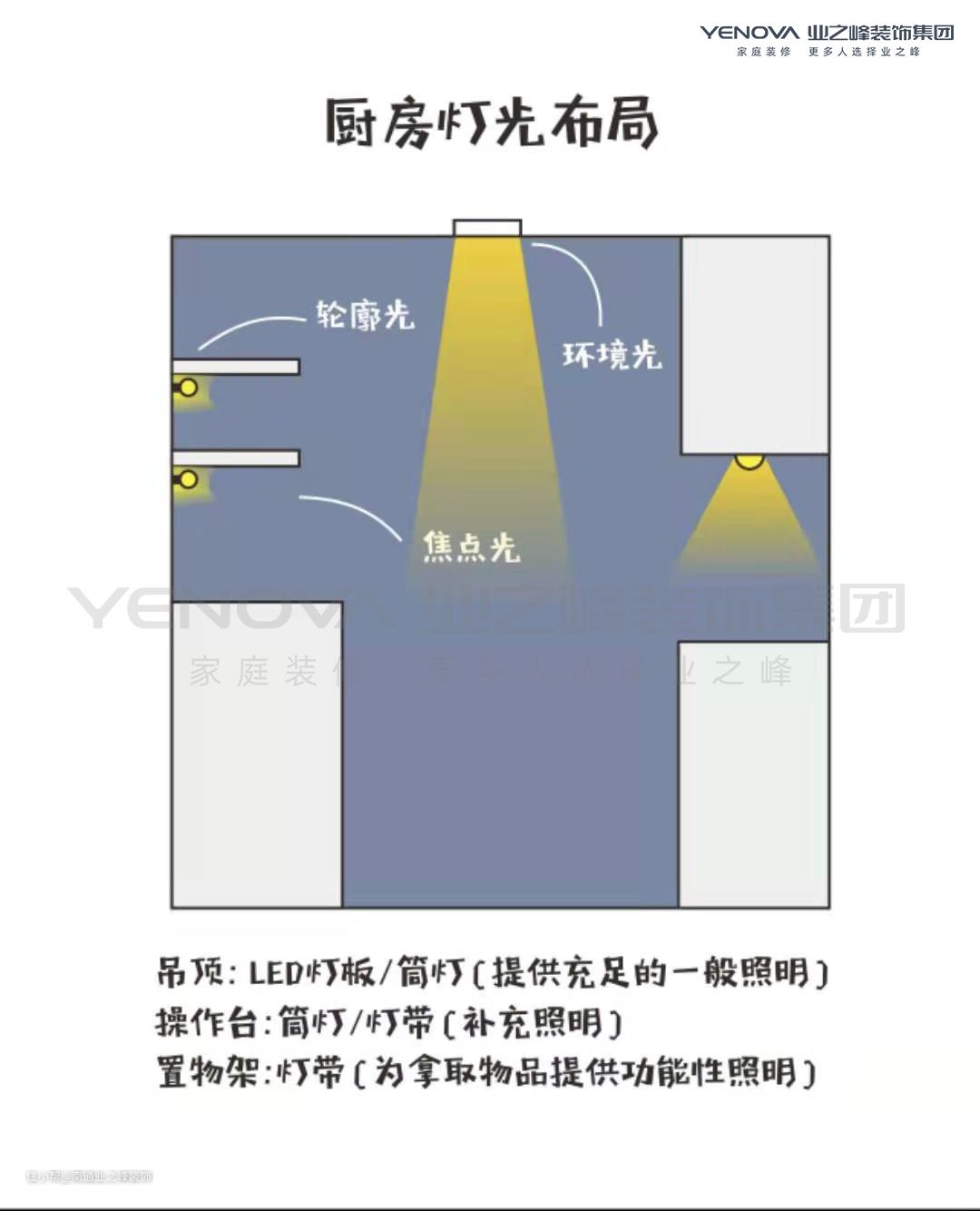 厨房=吸顶灯/筒灯+灯带+橱柜灯