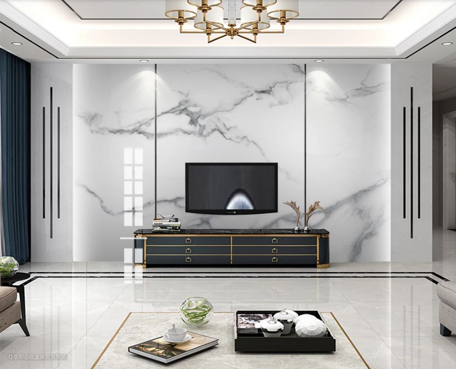 居上雅居客厅大理石瓷砖电视背景墙石材大板北欧现代新中式轻奢