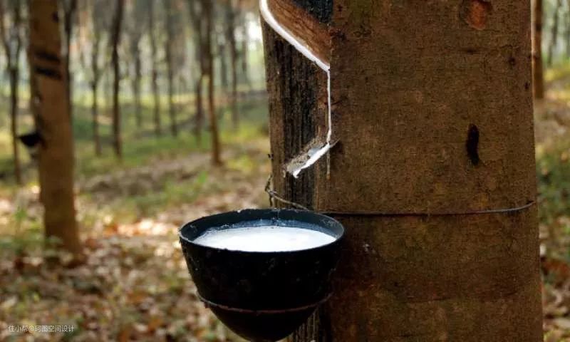 - ▲ 正在流乳胶的橡胶树,天然橡胶有很强的弹性和绝缘性,可塑性,隔水、隔气性,抗拉耐磨,在工业、医药卫生和日常生活都有很广泛的运用。