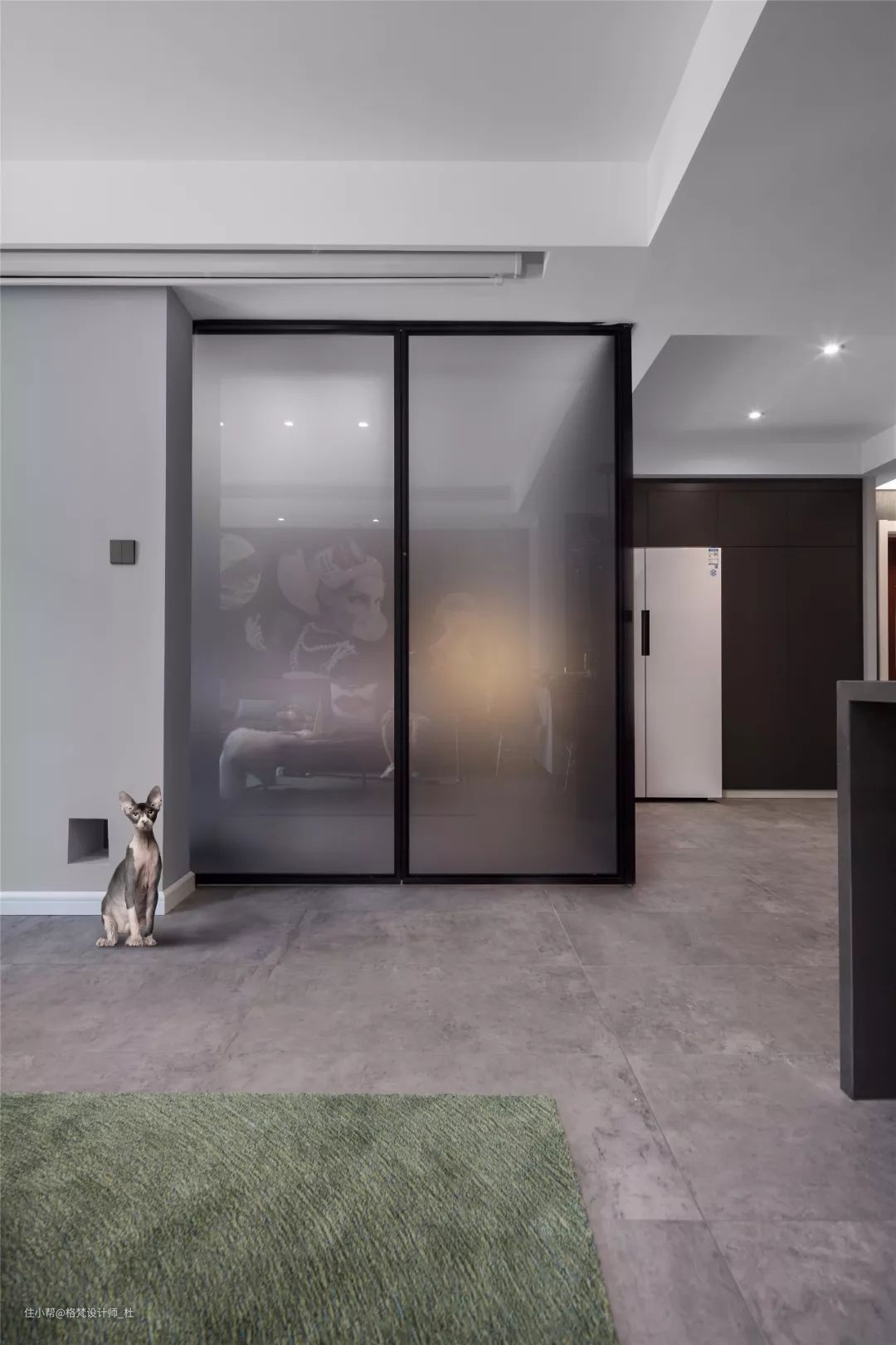 90㎡现代简约,玻璃推门做电视墙,半开放式的卧室
