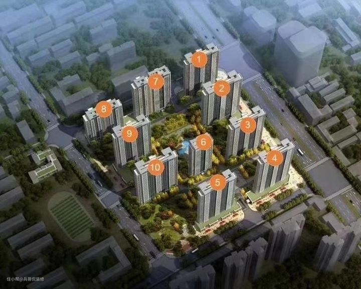 首先 1 2 3 4号楼临着快速路pass. 5 7 8号楼临街比较吵闹pass.10号楼西边的采光无遮挡相对不错,但是跟9号楼临着里边的辅路相对吵闹一些。再看看 我们发现6号楼位于中央比较僻静,与7号楼的距离还非常宽,通风采光都不错。所以楼王就是6号!,7号楼因为朝南楼间距大也相对不错。