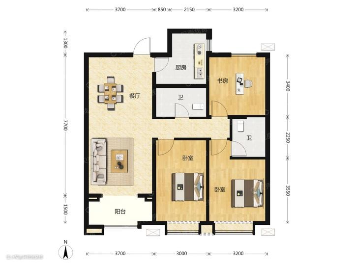每个房间的面积要合理,如果面积过小或过大都会影响到人们的居住舒适度。例如,主卧不得小于12平米,次卧不得小于8平米才能满足最基本的布置要求,客厅面宽超过3.5米才能放下合适的沙发电视柜,而厨房需要达到5平米,卫生间需要达到4平米,才能更方便人们使用。