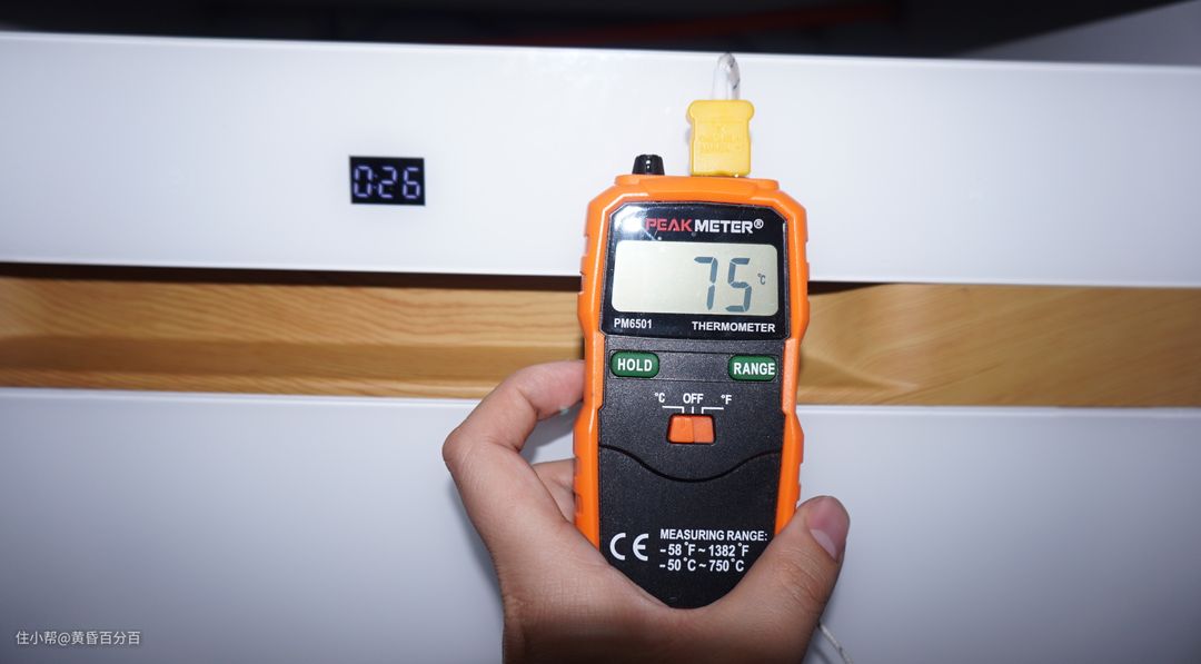 ▲经过实际测试,在最后一轮清洗时,洗碗机内水温达到了75°C并保持了约20分钟,设备限制无法提供线性图,敬请谅解,以后有预算我再升级下设备,为大家提供更直观的测评。