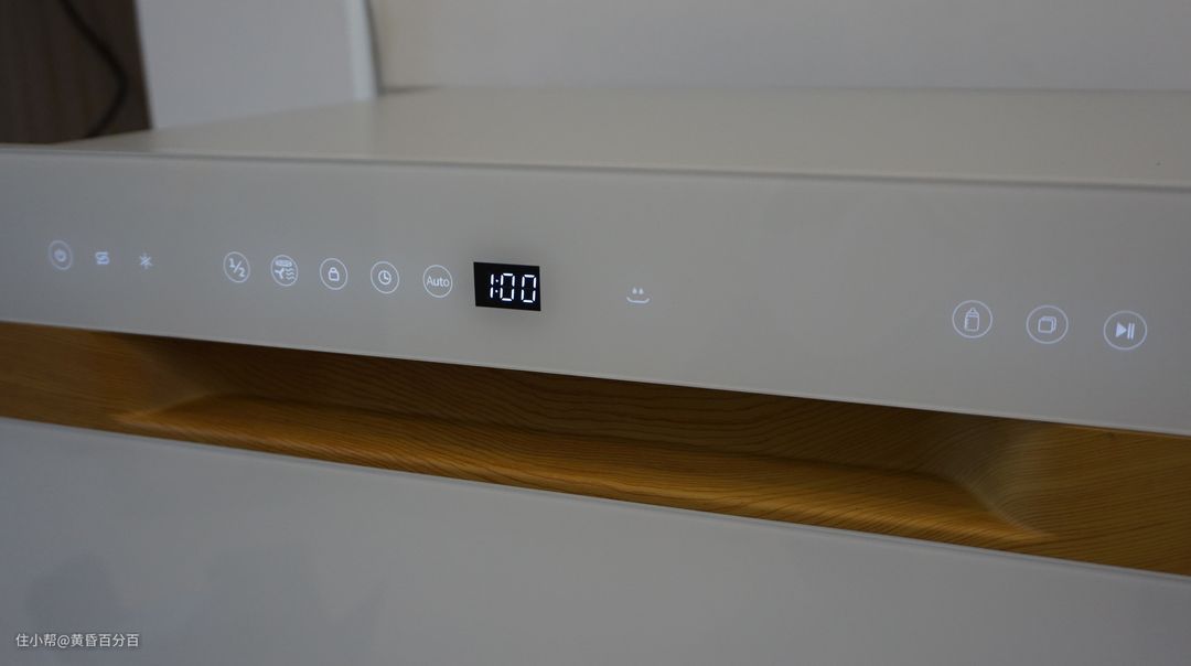 ▲慧曼洗碗机B1采用的是白色镜面玻璃面板配以木纹触摸控制板的设计,外观非常时尚。相较于其他品牌洗碗机常使用的难以融入家庭装修的金属拉丝表面或者长时间使用后会发黄掉漆的喷漆表面,镜面玻璃表面有着耐腐蚀,便于清洁等优点,同时更容易融入家庭装修环境。