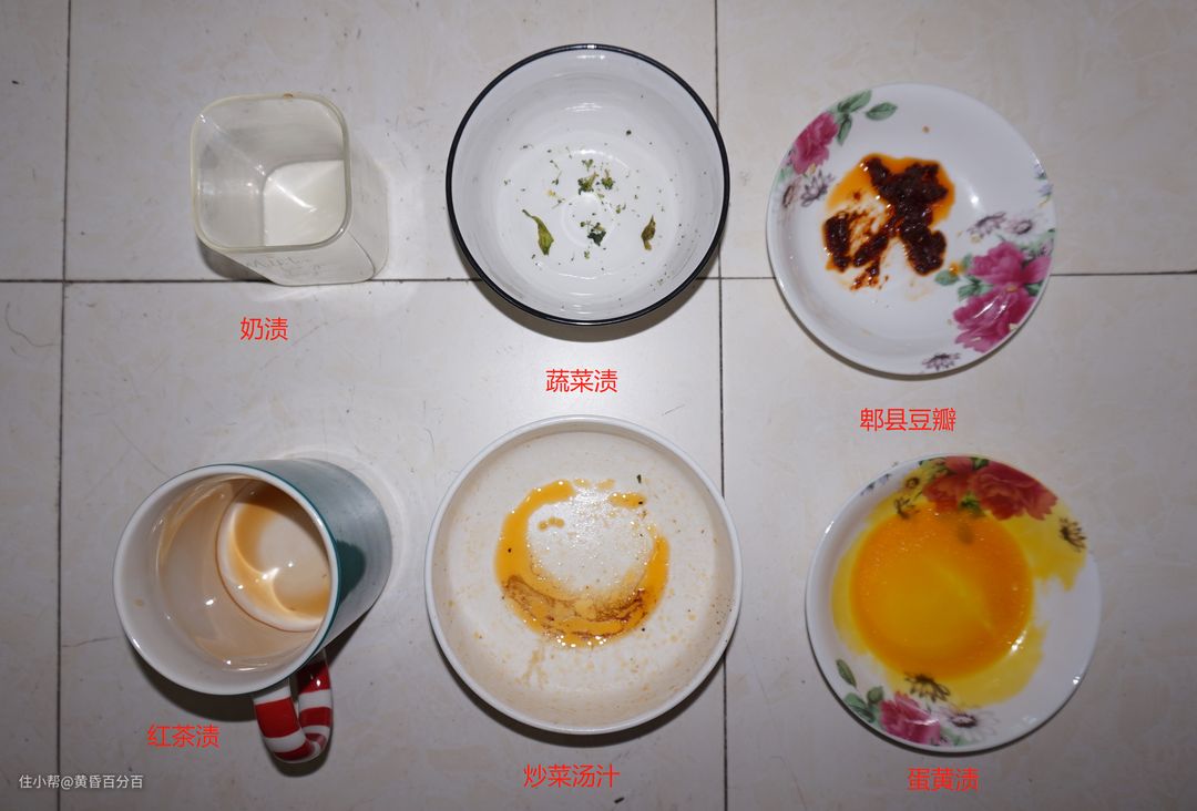 ▲参照国标《GB/T 20290-2016 家用电动洗碗机性能测试方法》第6章节洗涤性能中6.2 污染物要求以及自己手头所拥有的食材制作了蔬菜汁叶、蛋黄、牛奶渍、红茶渍四种污染物,并加入了大家常清洗的郫县豆瓣与炒菜油渍污染物,所有污染物均放入烤箱中80℃烘烤固化,这样处理后的污渍比如茶渍和蛋黄即使用手洗也非常的困难。