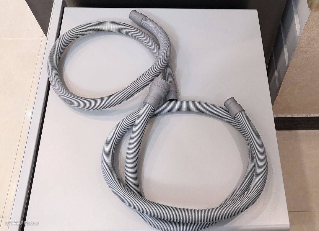 ▲如果需要购买水管延长管,去楼下五金店都可以买得到,其中进水管叫做“4分管延长管”,排水管叫做“6分管延长管”或者“洗衣机排水管延长管”,基本上你这么跟老板说他们就能找到正确的东西给你。上图中,左上角的是洗碗机标配的延长管,还是不够长,于是我又买了一根更长的延长管,也就是右下角这根。