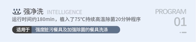▲洗涤程序上,我们选择强净洗,它包含了75°C高温除菌过程以及高温烘干。