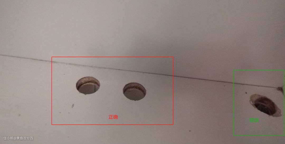 ▲因为橱柜并没有预留供水路走动的孔洞,所以我们要先用打洞器打洞,入门级电动打洞器200多元就能买到,手动打动器更便宜。所以如果未来有大量改造打算的朋友可以自己买一个打动器,而如果不喜欢折腾的朋友也可以雇一个人进行打洞,估计50-100元就能搞定。打洞的时候注意,不要在橱柜的角落处打洞,因为那有可能刚好是橱柜的称重脚所在的位置,我就犯了这个错误,打洞时请选择红框中的位置,避免绿框中的位置。