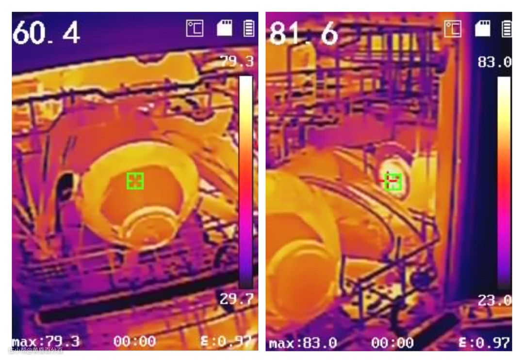 ▲在洗碗机结束清洗程序后打开柜门,从热呈现照片中可见,餐具上的温度依旧有60°C以上,洗碗机出风口处温度最高达到了83°C,能够有效的杀死多数细菌。另外,相较于传统洗碗机的冷凝式烘干,热风烘干会将水分排出洗碗机柜体之外,长久保存碗筷也不会返潮。