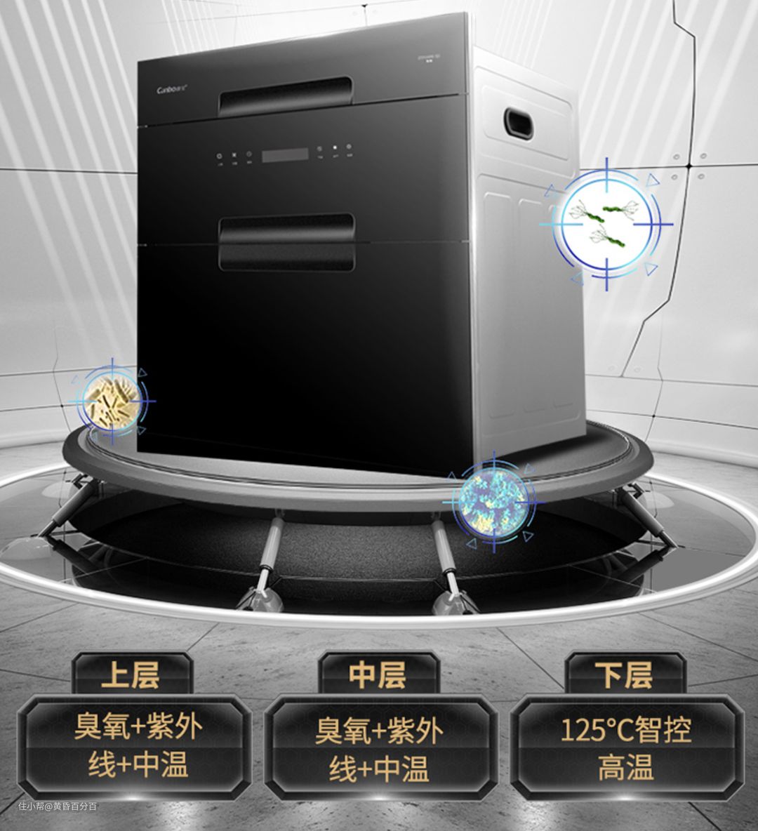 ▲中高端的消毒柜主要提供了臭氧杀菌、紫外线杀菌与125°C高温烘干杀菌。