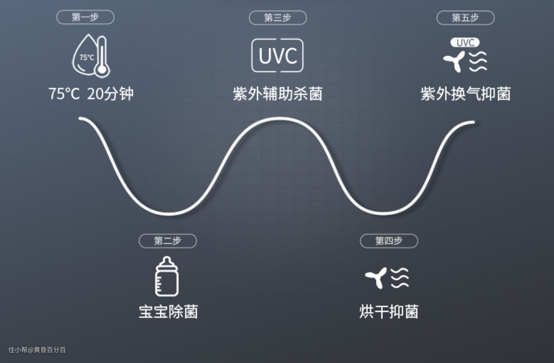 ▲而洗碗机的消毒方式上主要为70-75°C高温洗涤除菌、紫外线杀菌、热风烘干除菌。