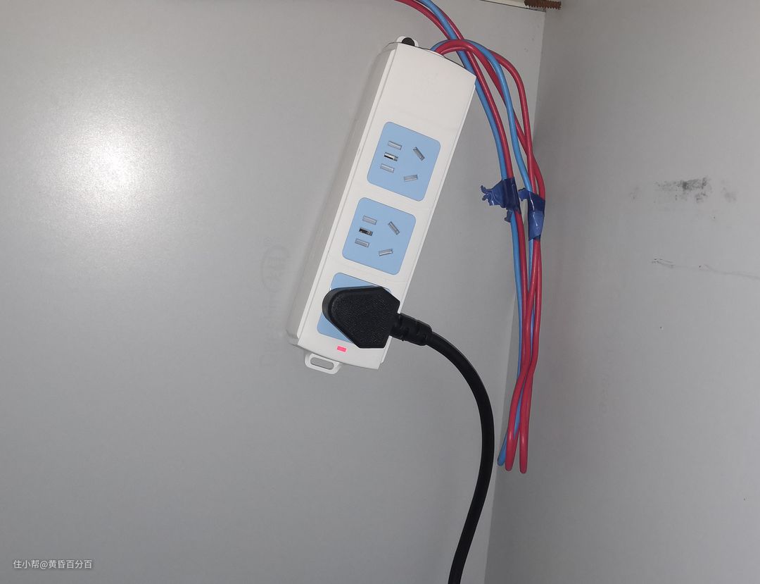 ▲为了解决供电的问题,我购买了无线插排与可拆卸插头,并购买了电源线,利用橱柜上之前预留的小缺口完成供电。有一说一,这种方式挺丑的,但也是无奈之举。