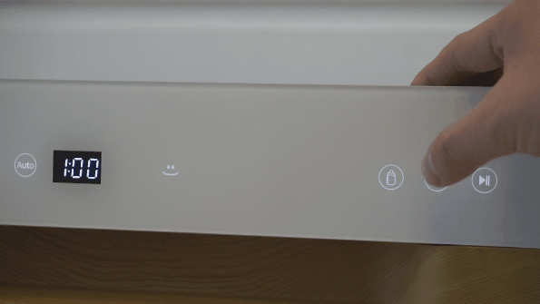 ▲慧曼洗碗机B1的操作面板集成在了玻璃门板的上部,只有开机的时候才能看到亮灯,能够让整体外观简洁最大化。触摸式操控也不用担心按键老化,整体来说很不错,不过如果要是单键单控的话就更好了。