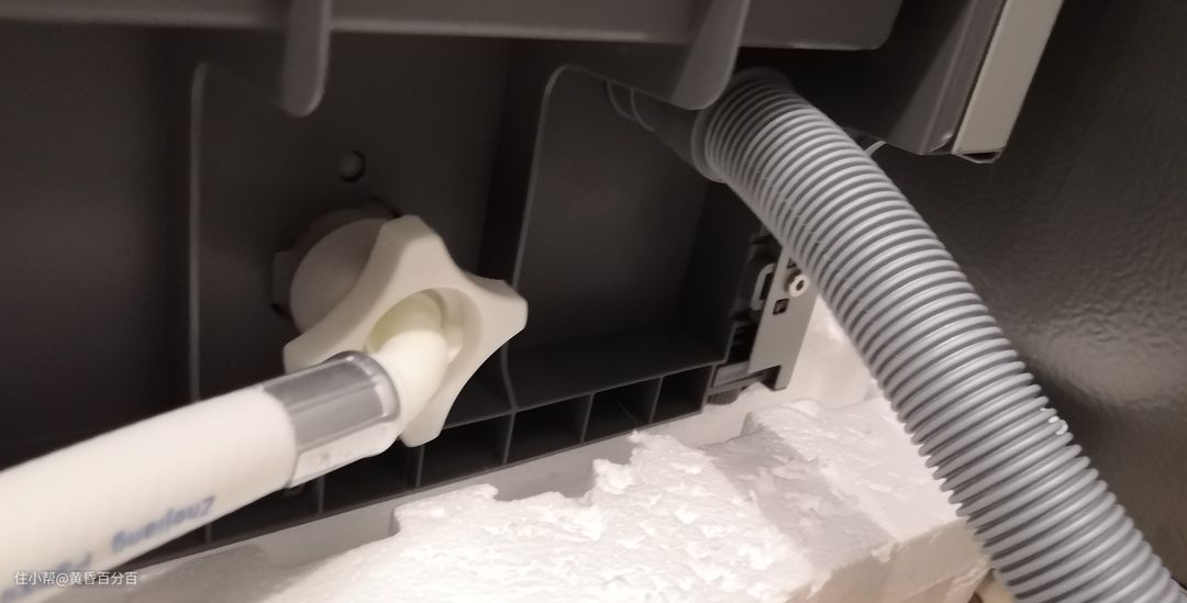 ▲排水管的链接,有两种方式,一种是直接连接到地漏里面,另外一种则是连接到水槽下方的排水管,链接排水管的时候需要自购6分口的溢水三通。需要注意的是,如果条件允许,强烈建议做一个倒U形的防倒灌设计,可以有效防止水槽中的污水倒灌至洗碗机。另外,洗碗机为水泵强制排水,大家放心做防倒灌就好,无需考虑水流高度差的问题。