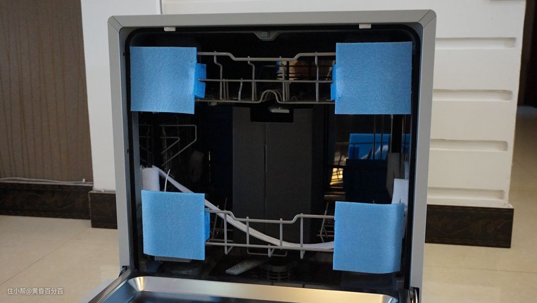 ▲打开洗碗机门后,内部保护的也比较好。