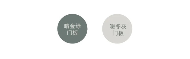 带有闪银效果的绿色源于自然雨林的启发,在灯光点缀和白色门板的映衬下,大面积暗金绿更具视觉冲击力。