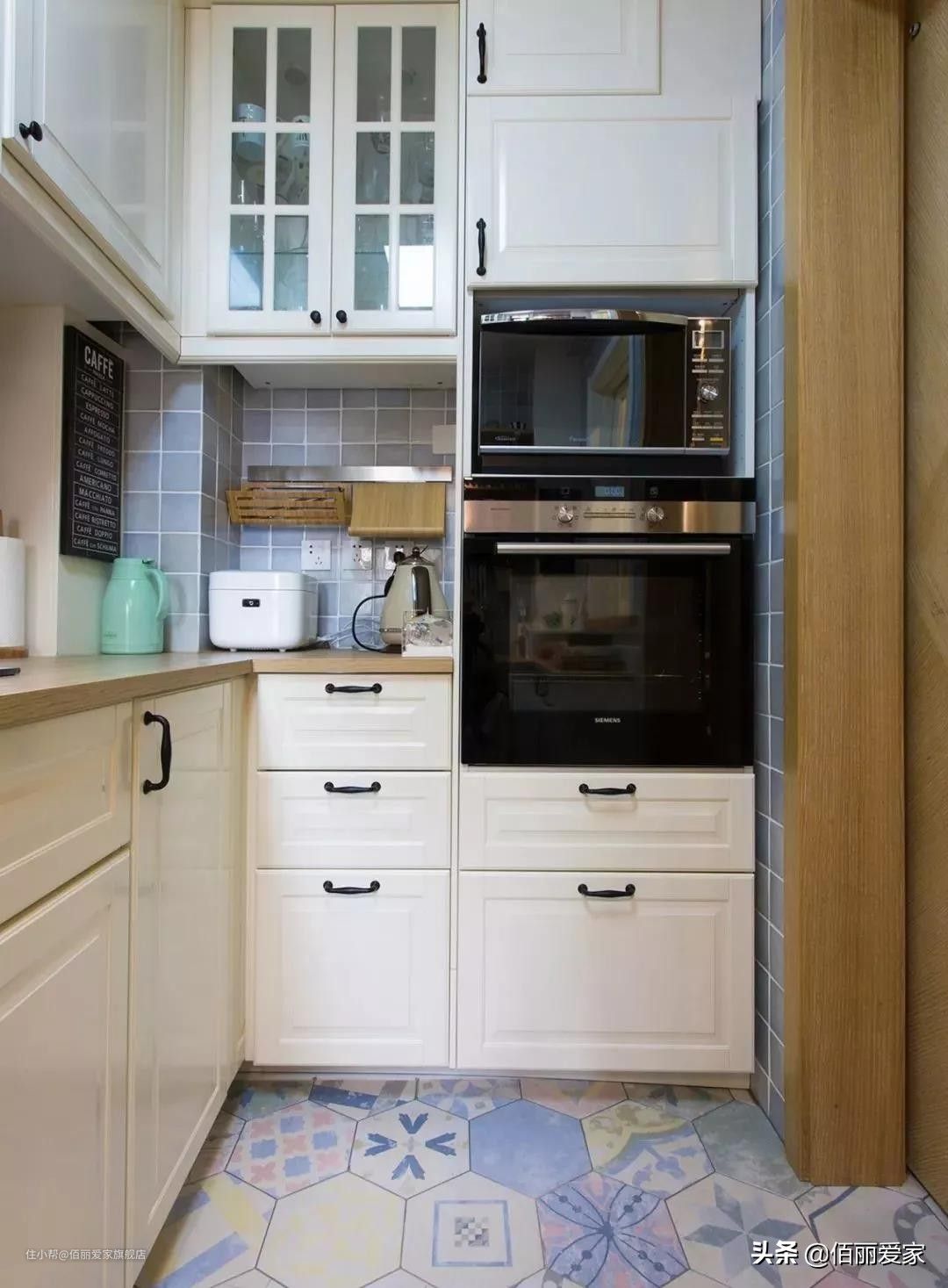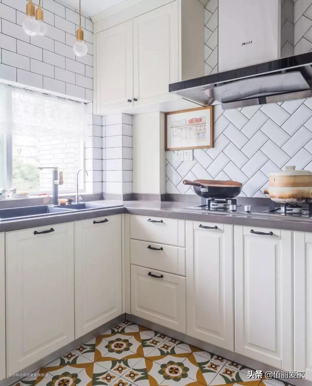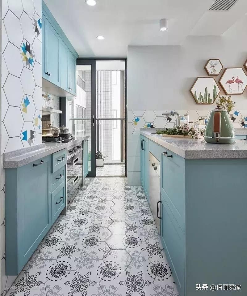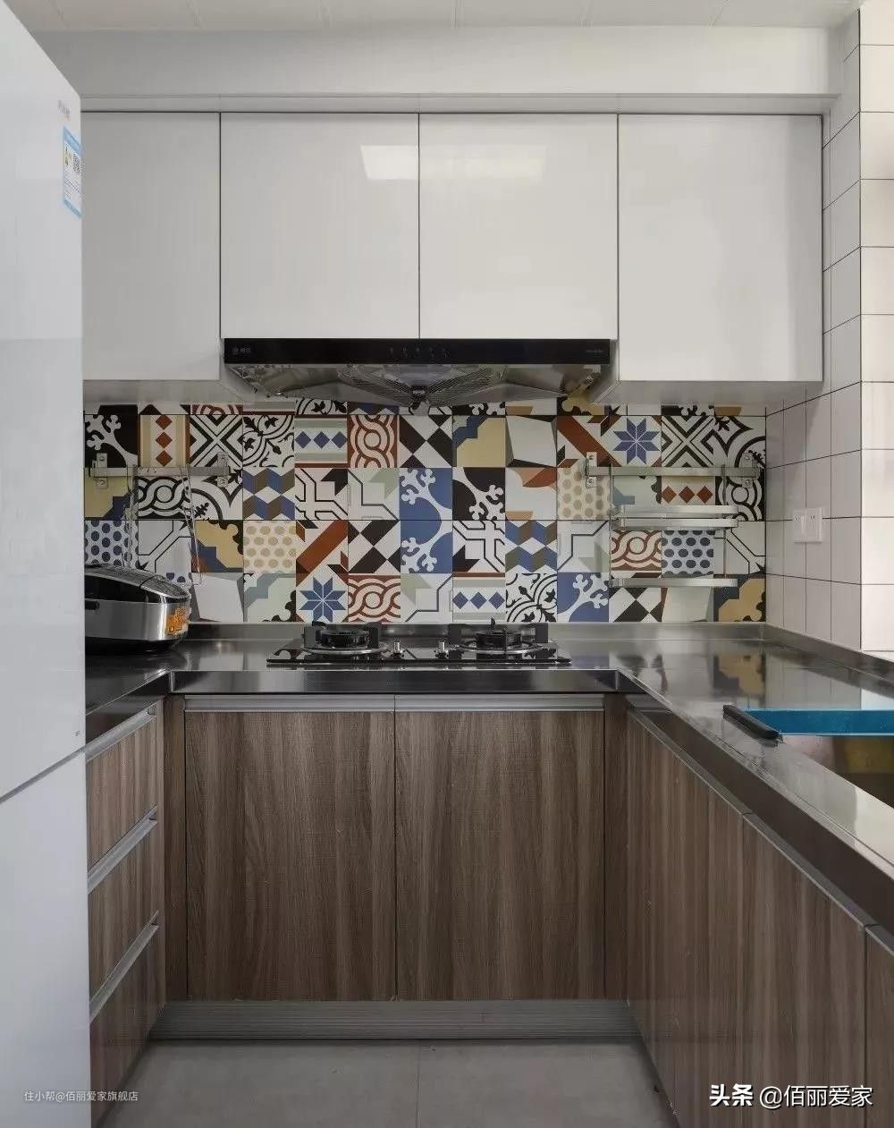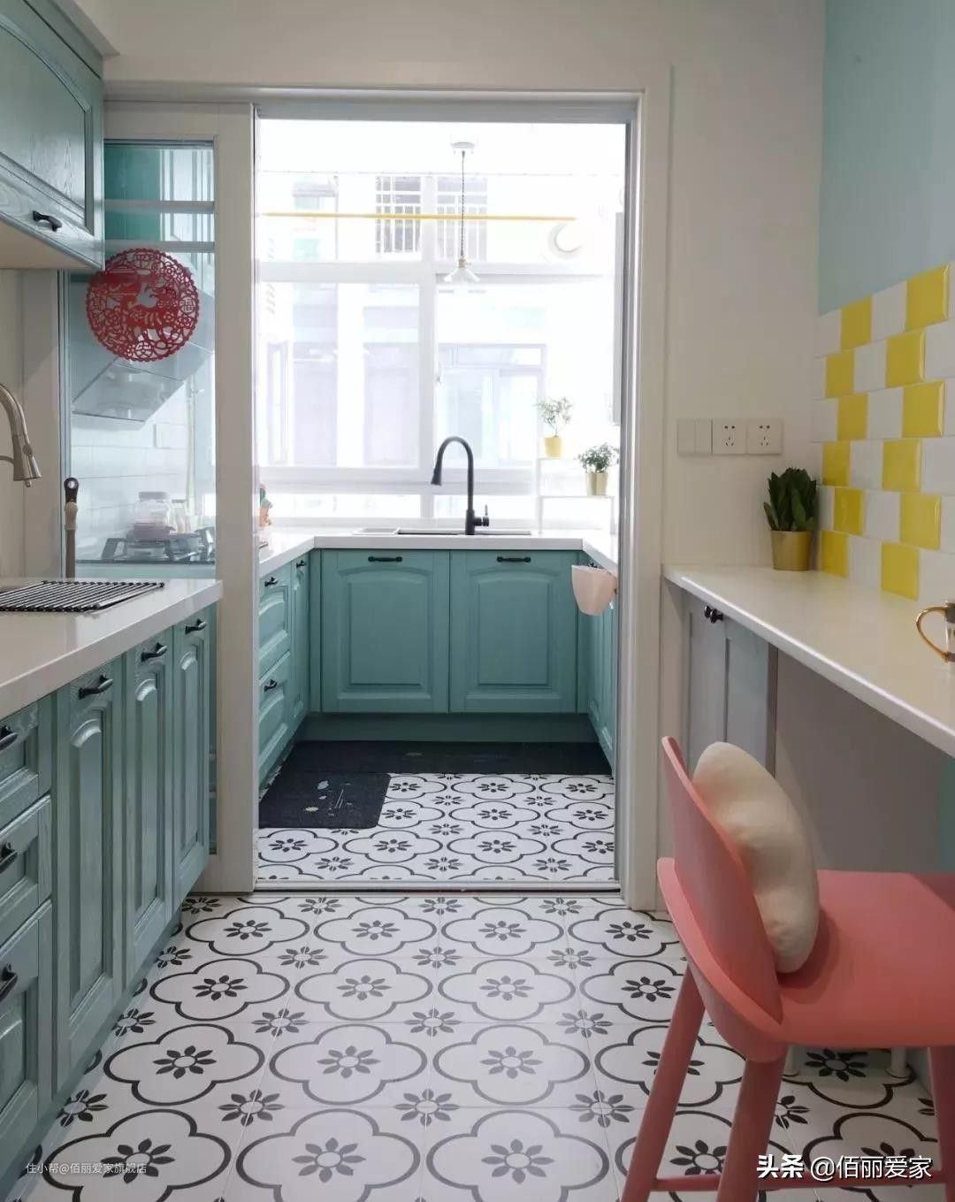 但是,如果能够合理运用花砖,厨房的气质会立即“时尚、艺术”起来,尤其是对于餐厨一体的空间花砖还能起到自然分区的作用。