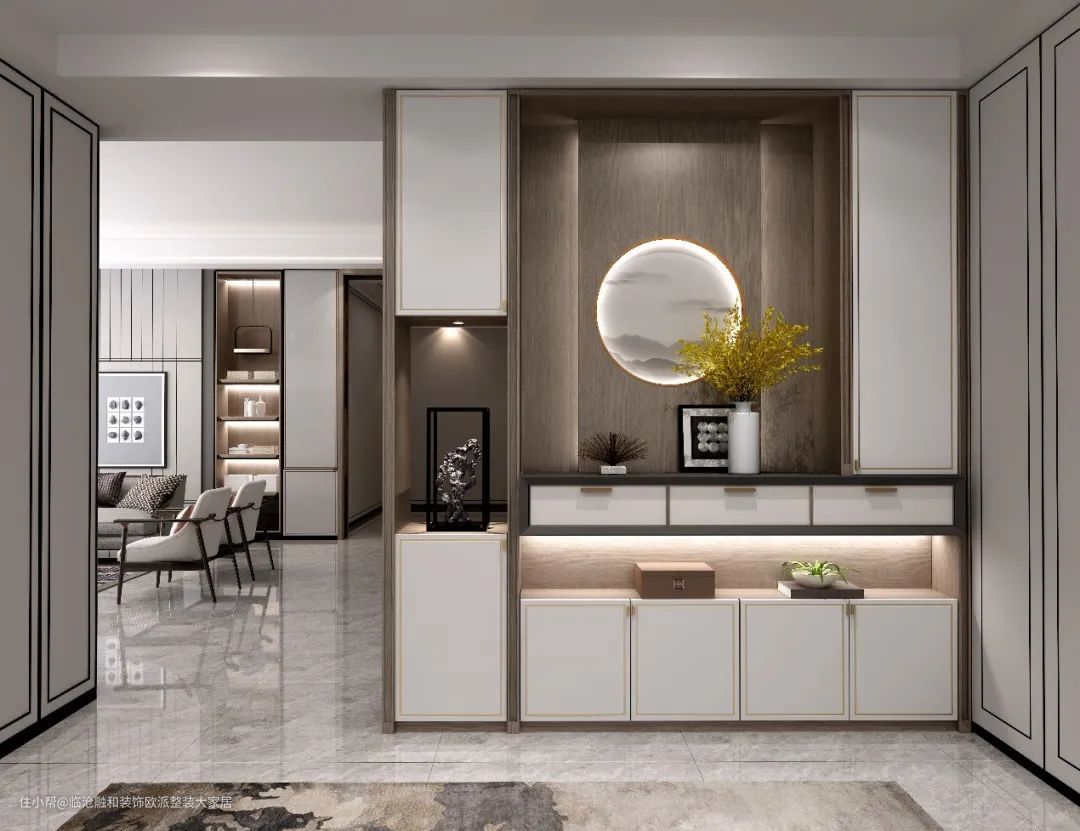 有特别喜欢的风格,不妨在设计时就提出来。像喜欢新中式风格的朋友,可以在玄关处融入简约大方的新中式入户玄关柜设计,上下开放格+带门柜,中间大片装饰留白,韵味十足。如果喜欢现代简约风格的话,就可以考虑融入简约大气的实用玄关柜。原木搭配经典百搭的白色柜门,就算再过十几年也不会过时。