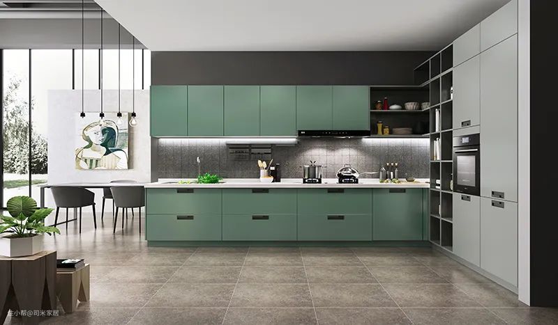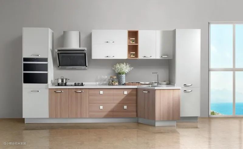 为了不让厨房跟整体家居的风格太跳跃,橱柜的颜色要根据家居整体风格来定。