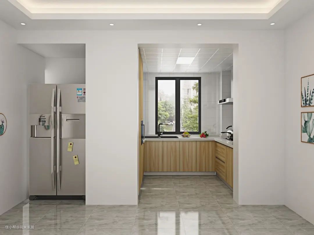 如果你家厨房面积较小,或是有光线不足的情况,那就不要装深色系橱柜,会显得空间更压抑且更昏暗。这时候要选择浅色系、亮色系,扩大整体视觉感。