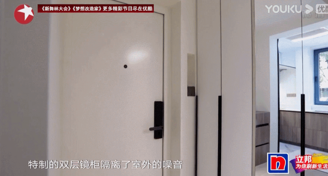 进门左手边就是双层大镜柜,镜面不仅可以代替穿衣镜还可以让空间显得更加开阔。