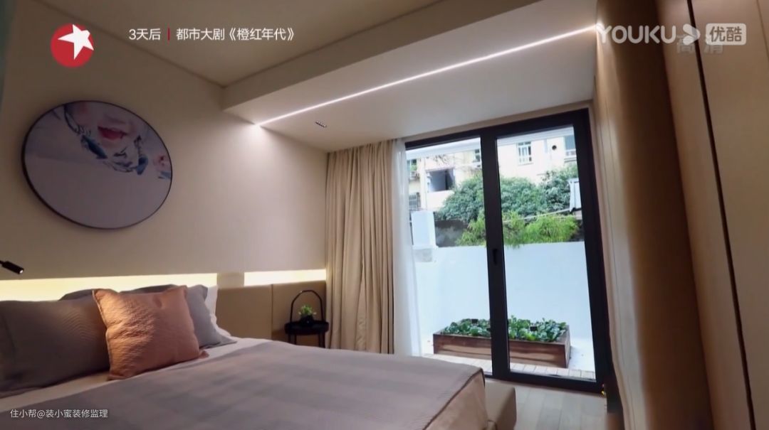 主卧安装了落地窗,庭院景色可以一览无余。