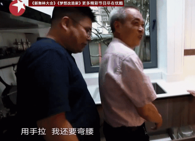 为了照顾爷爷做饭,上面的抽屉用手拉,下面的抽屉可以用脚钩,知道真相的爷爷开心地眉毛都飞起来了。