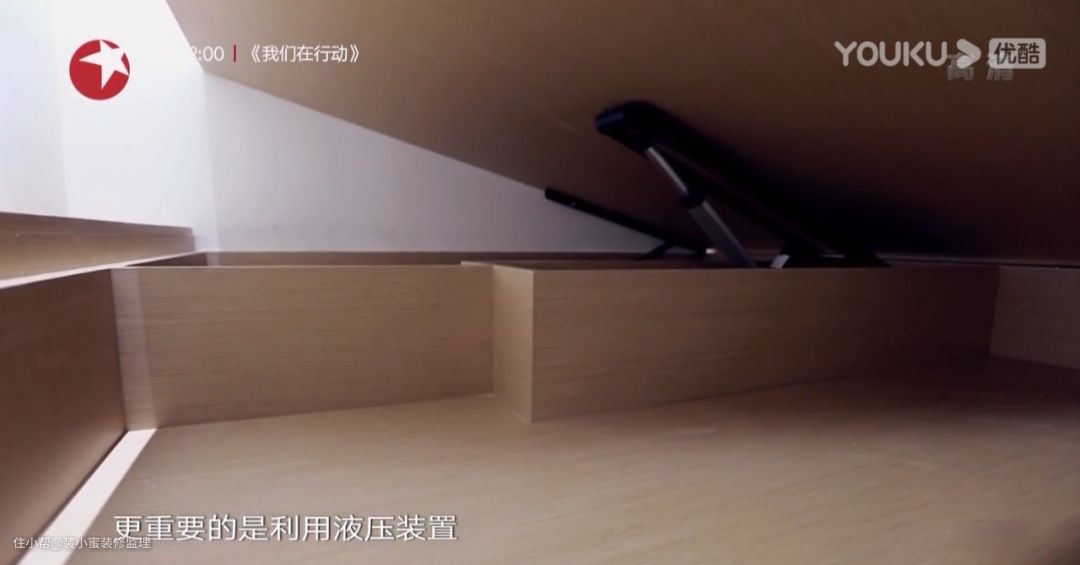 考虑老人储物费劲,采用了液压装置,提供了走入式收纳空间,可以收纳换季衣服。