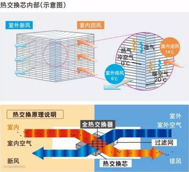 - 全热交换:不仅交换热,还可以交换湿度,能有效阻止室外湿气进入