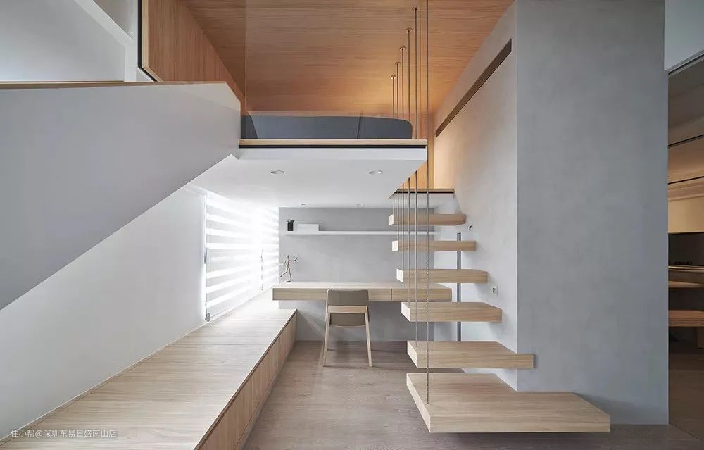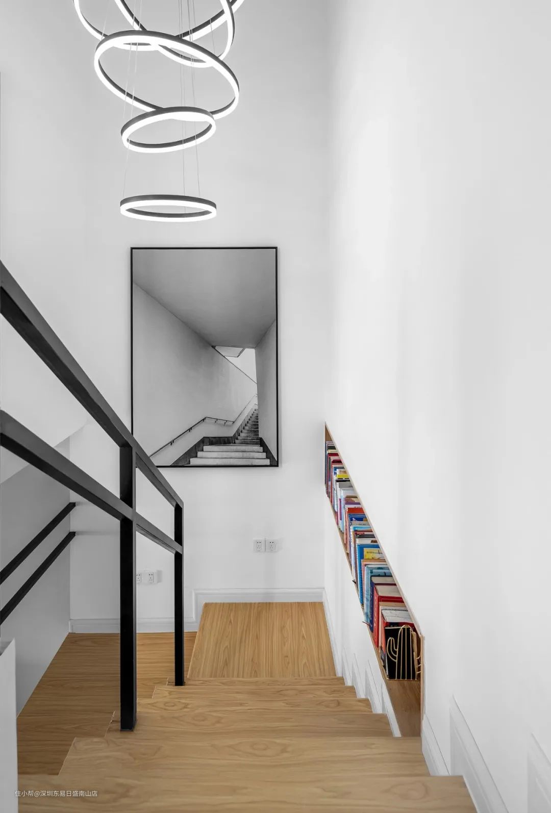在楼梯处设计一个阅读角,不仅可以大大提升空间的使用率,而且在装饰效果上也非常好,这样就更有一种藏书阁的感觉了。
