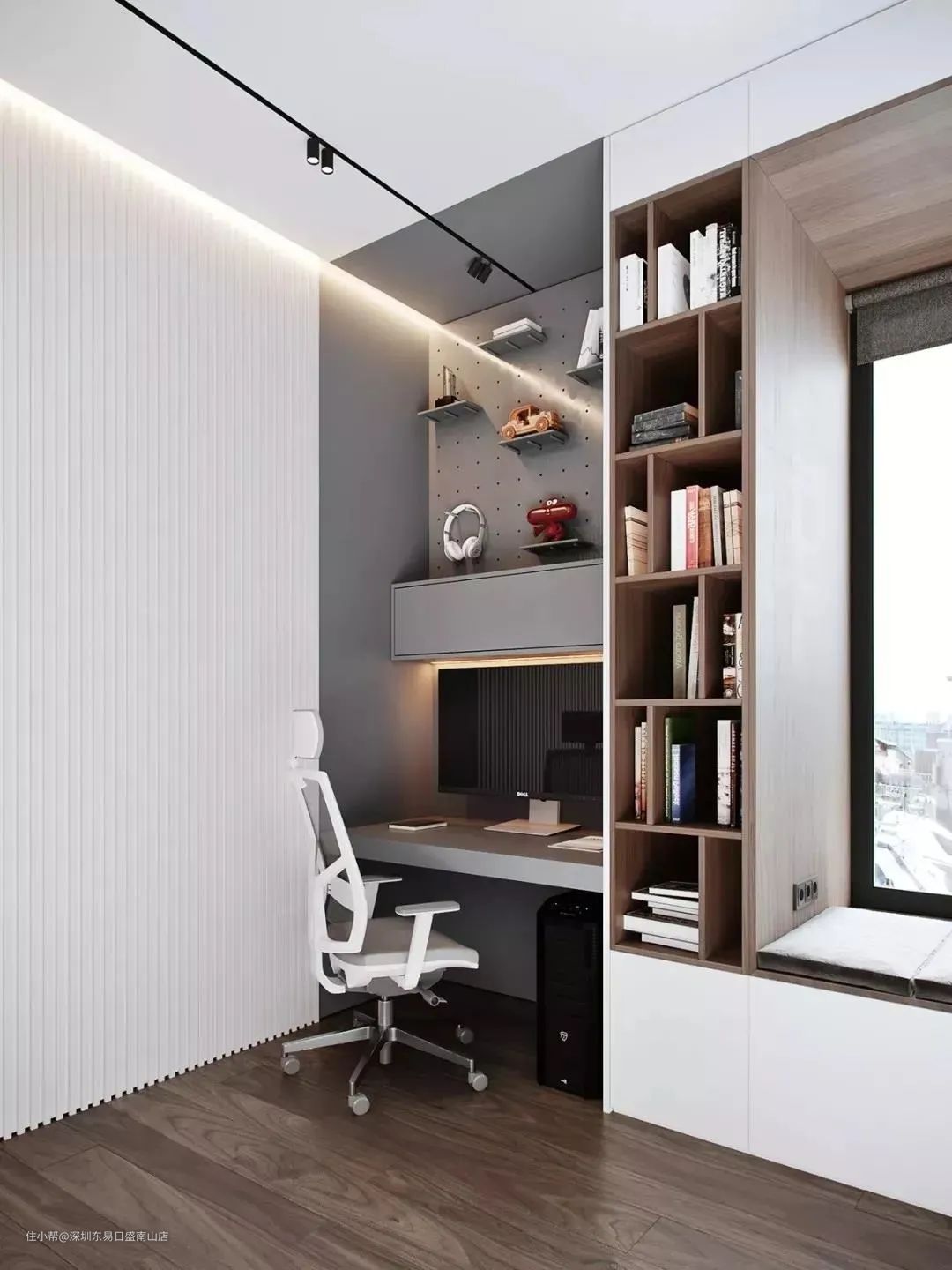 对中小户型来说,专门规划一间单一功能的“书房”,可能不太现实。其实,不是每个家里都需要单独设置一个书房,给自己的精神世界加油充电,完全可以随时随地嘛。
