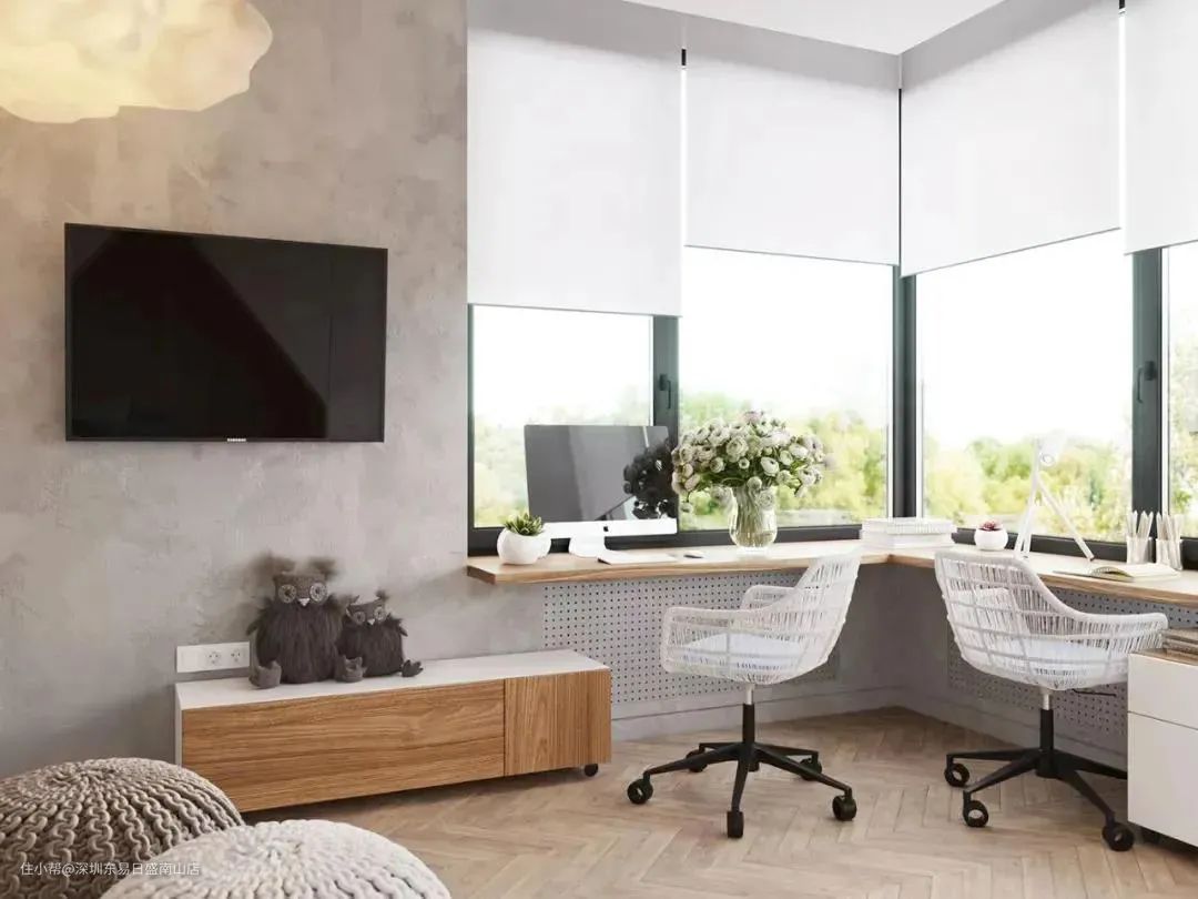如果有条件,可以沿窗定制一个书桌,学习或者办公累了可以眺望一下远方,放松一下眼睛,身心也会随之轻松很多。