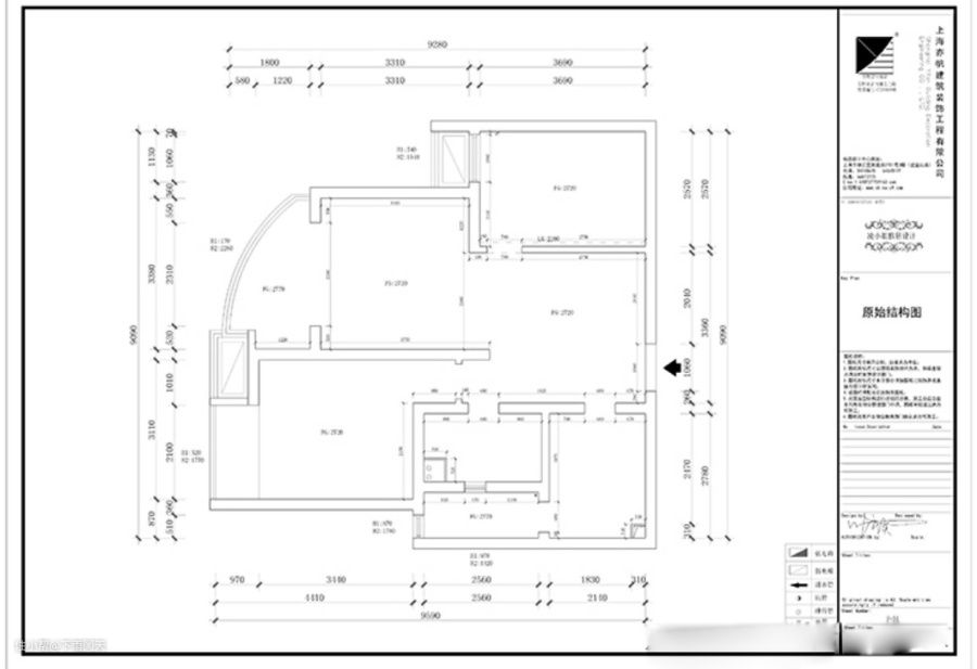 这是户型图,面积90平两居室的房子,户型中规中矩,不是很好,也不是特别差。有一个圆弧的阳台,显得空间还是比较宽敞的哈,唯一的遗憾就是没有独立的玄关。