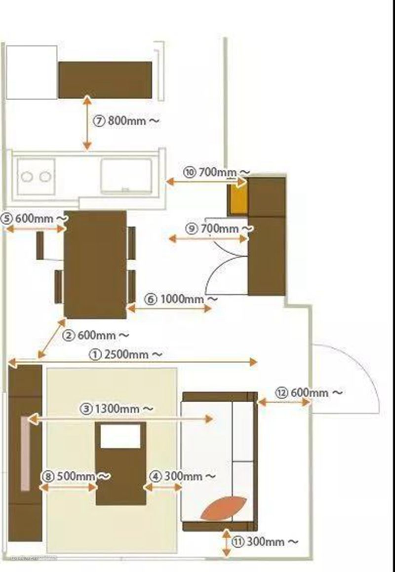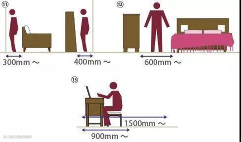 ②家具之间的通道:600mm以上