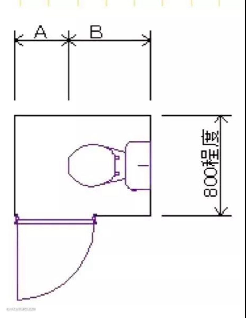 如下图所示,A是马桶到脚下的水平距离,建议400mm以上,B是坐便器的固定宽度,一般在650-750mm之间。