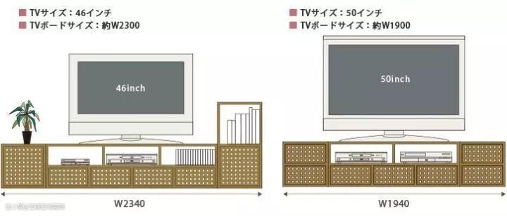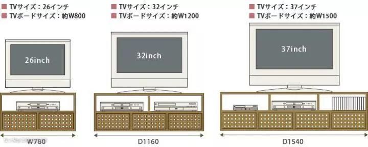 电视柜的宽度应与电视的大小对应。不同尺寸电视对应柜体的具体宽度可以参考下图。