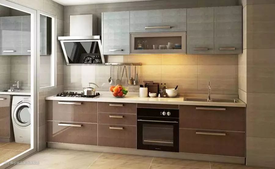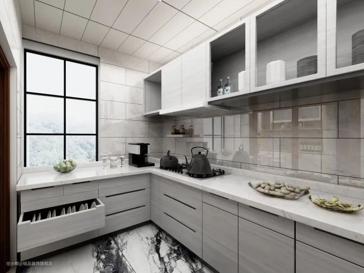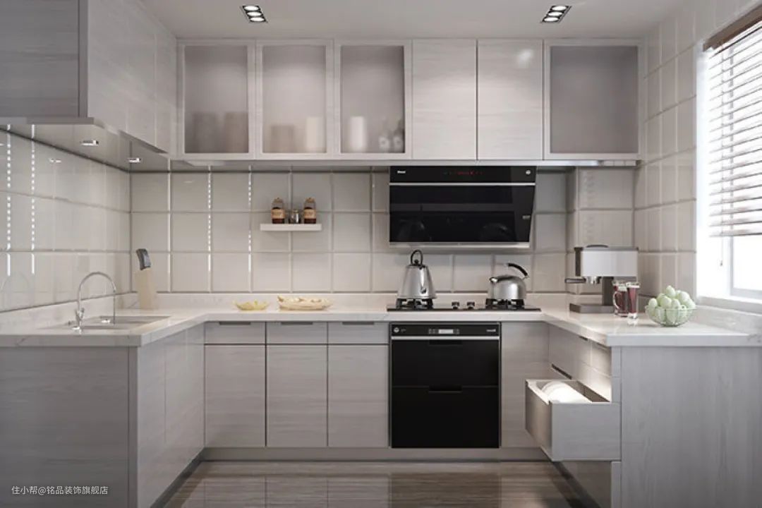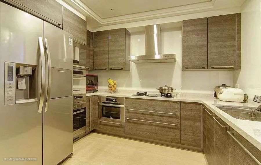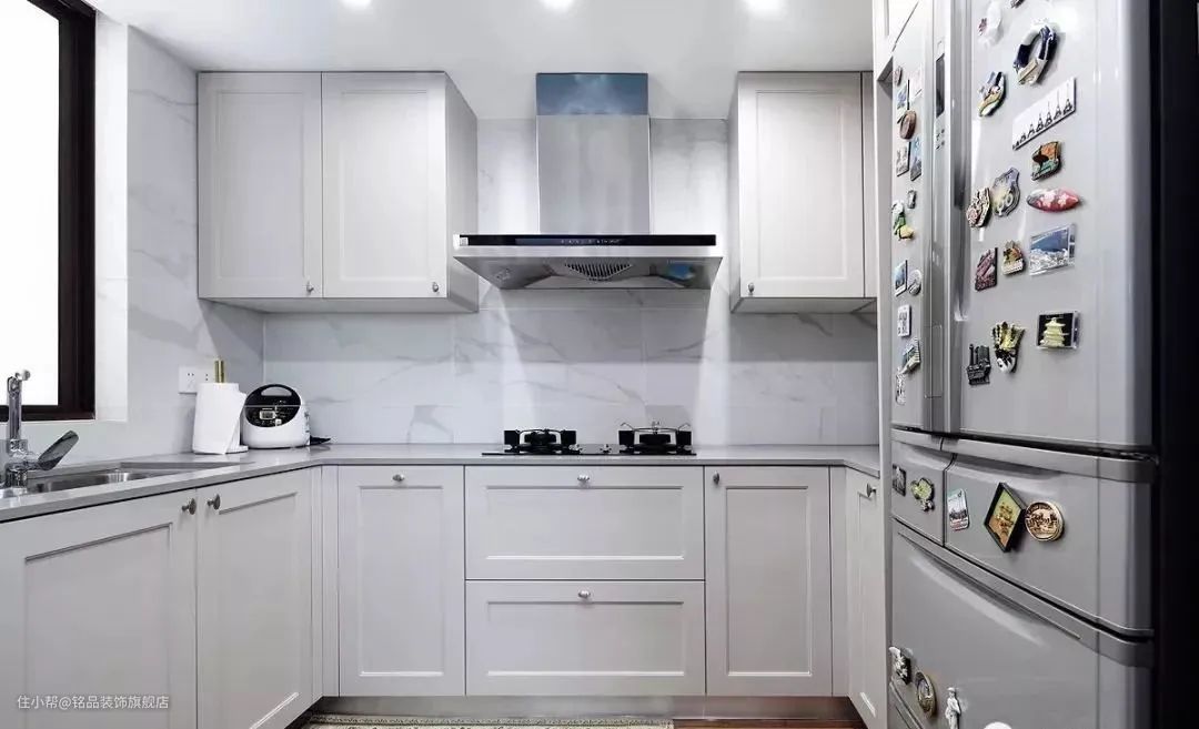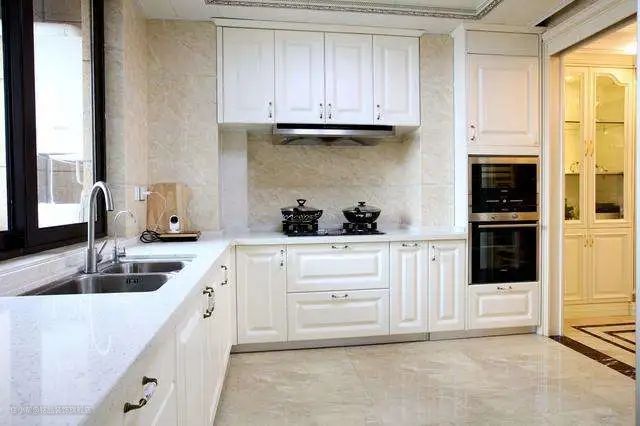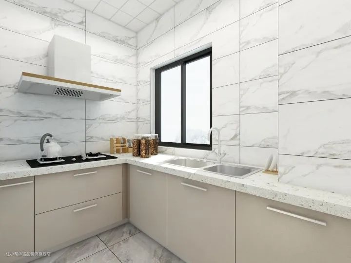一般厨房间都是比较小,橱柜占了很大面积,净面积其实是比较小的,为了避免浪费和保持空间的协调性,而且还可以避免大规格瓷砖切割等施工带来的诸多不便。