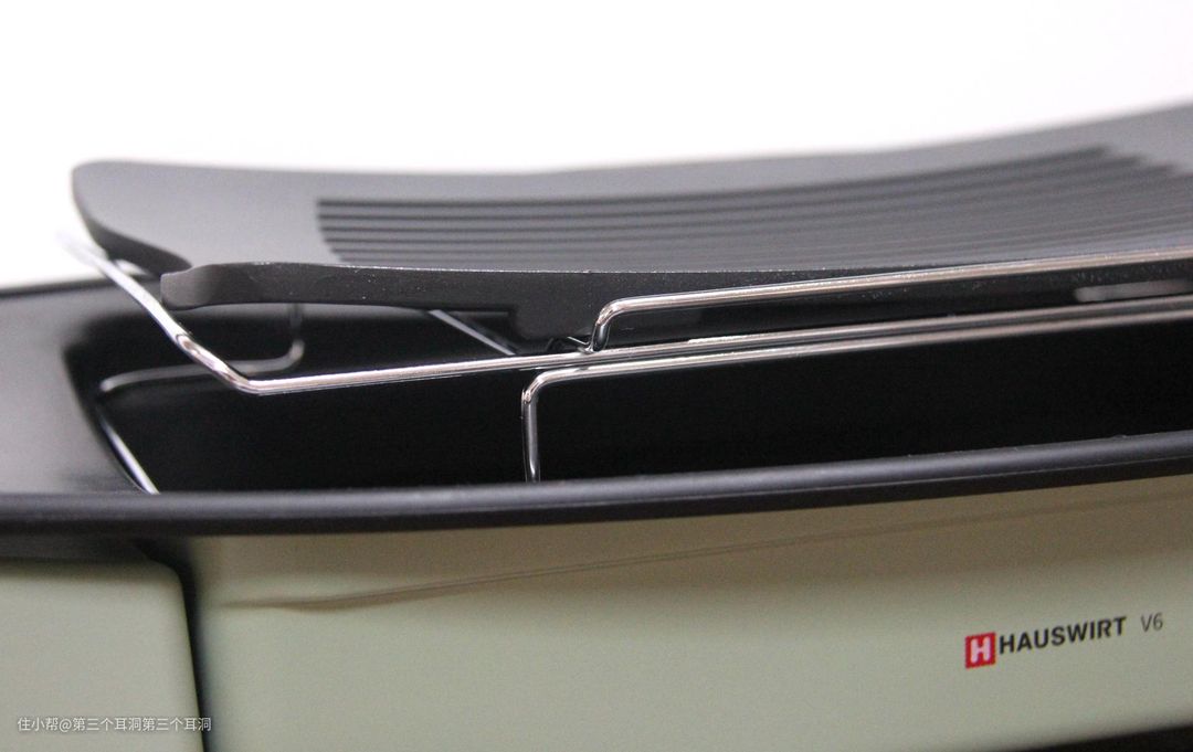 ▼和普通烤炉最大的不同,海氏V6无烟快烤炉有一个“顶棚”。顶部有2个加热管,避免油脂与热源接触,没有接触,自然也就不会有油烟了。在加热管外,有一层金属防护网,金属外壳上除了“高温注意”的温馨提示外,还有大量的散热孔设计用来散热,安全性高。