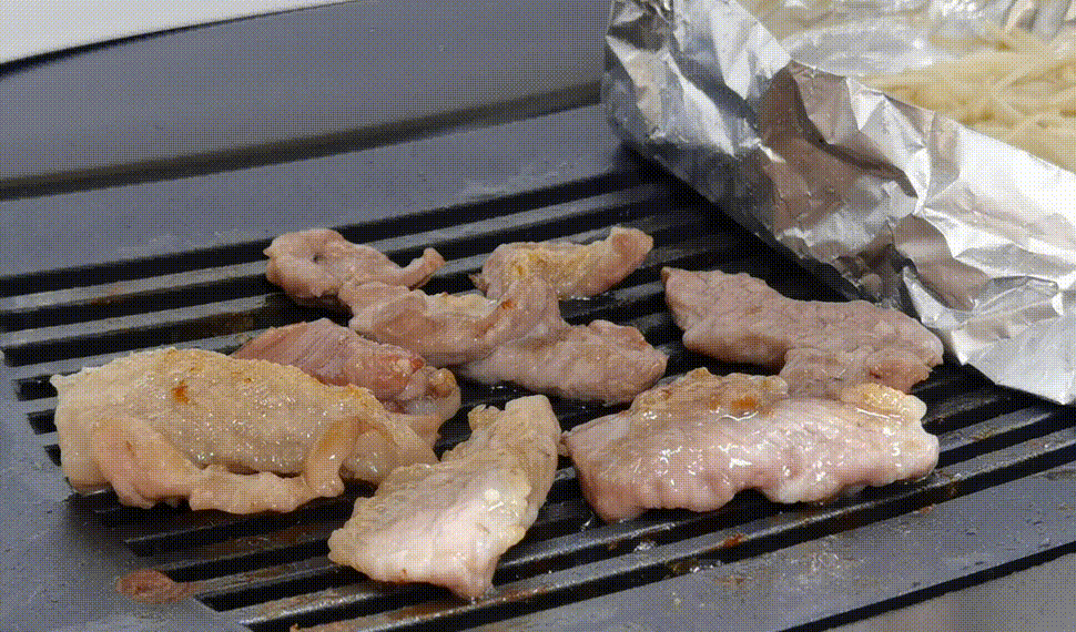 烤炉的火力和普通炉子相比,毫不逊色,普通的牛肉片只要稍微翻一个面,一会就能烤好,喜欢吃硬一点的话多烤一会,牛肉中的油脂就会被充分烤出来,然后滴到接水盘里。