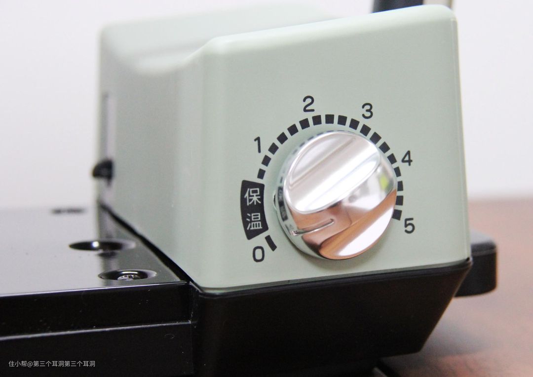 ▼温度通过旋钮调节,共有5档可以调节,可以实现不同的烧烤火力和效果。其中,0-1档是保温档。打开后0.2秒就能加热,非常迅速,无需等待。