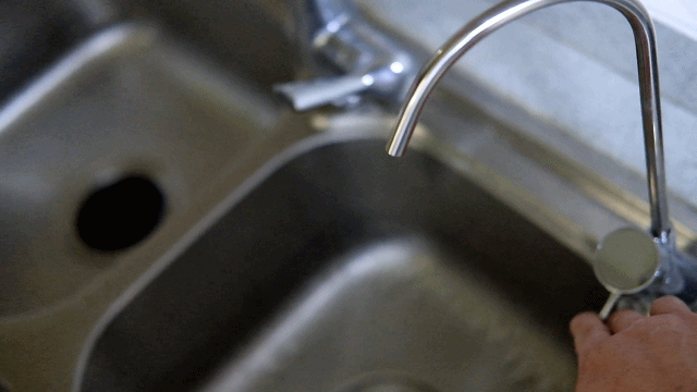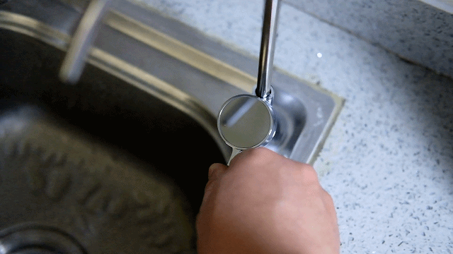 龙头的机械式开关转动很顺畅,手感上有一定阻尼感松紧度合适,出水的效率也很快,可以从动图中看到将把手转动即出水▼