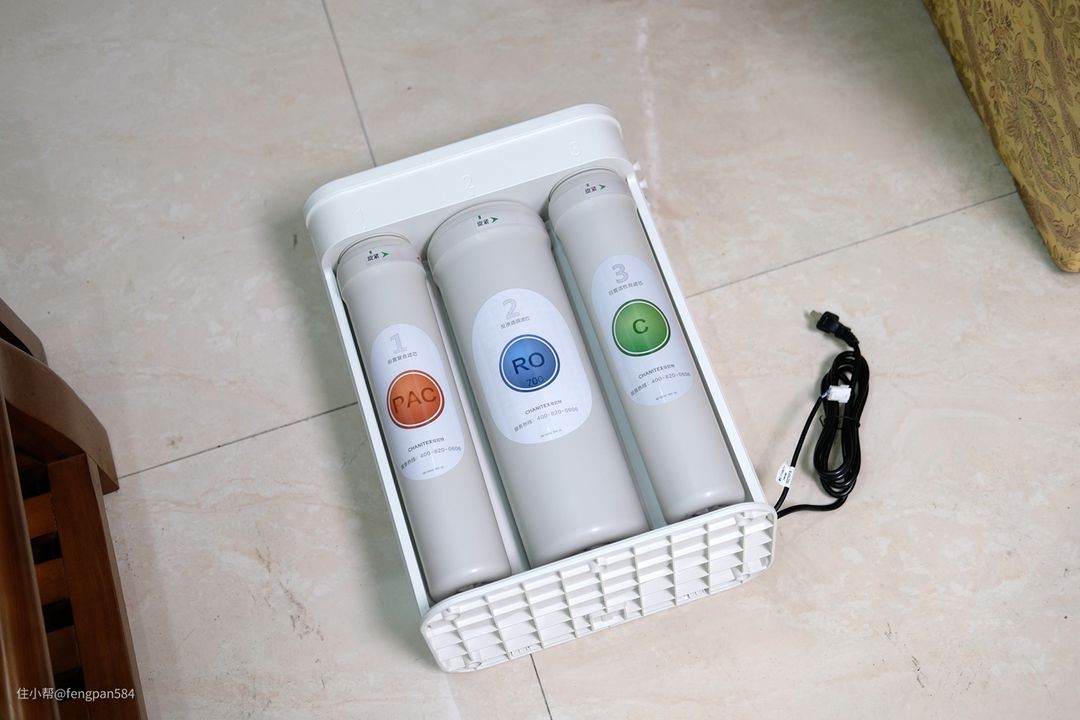 佳尼特这款净水器采用的3个滤芯及5级过滤系统,其中1号芯:集成式复合滤芯(PAC),起到过滤自来水中余氯及杂质的,2号芯:RO反渗透膜滤芯,核心材质是采用的自家专利技术的长效RO膜片,能够满足长达3年免更换的使用需求,而且2:1的废水比跟同类产品比较也是很有优势的,起到过滤细菌、铁锈及金属等离子状态的化合物的作用,去除率高达99%,3号芯(C):颗粒活性炭滤芯,起到对水质脱色、去除异味的作用,而且装置有这类滤芯的净水器的纯水口感也会有一定的提升▼