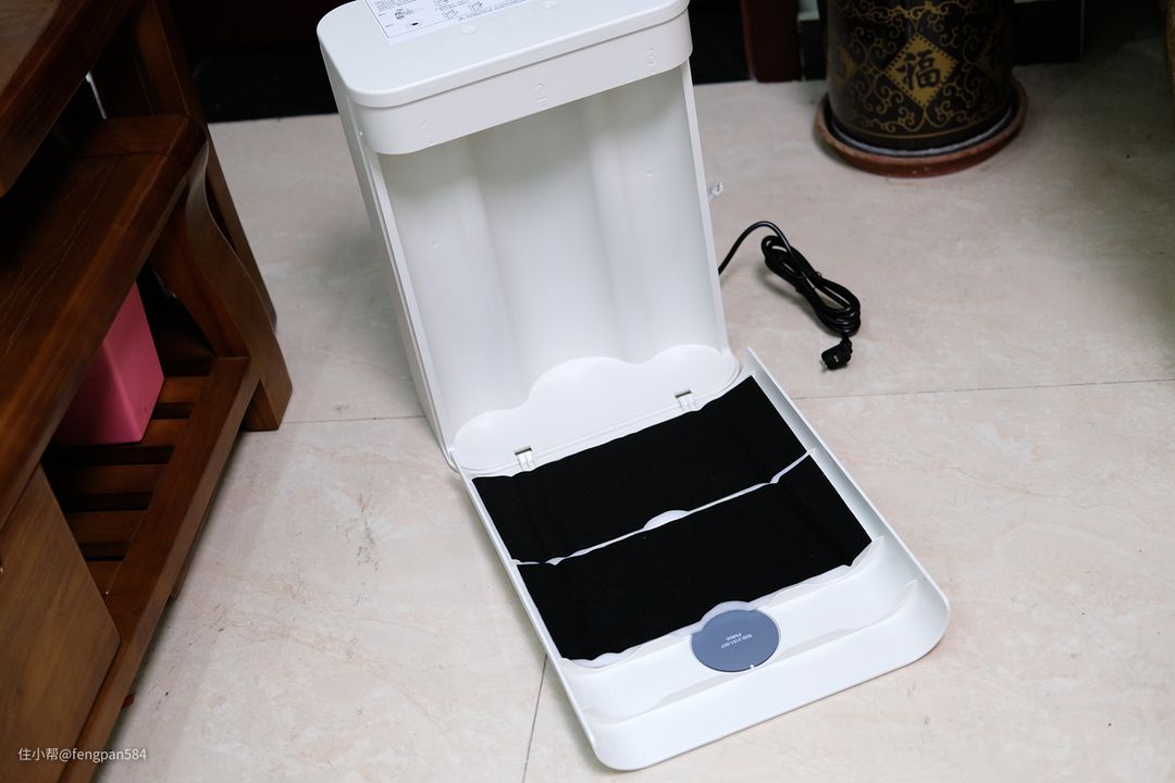 机身的前面板是卡扣式的固定方式,拆卸起来是较为方便,内里就是放置固定滤芯的的空间,在前面板的内侧还可以看到两块消音棉的设置,这是较为贴心的设计▼