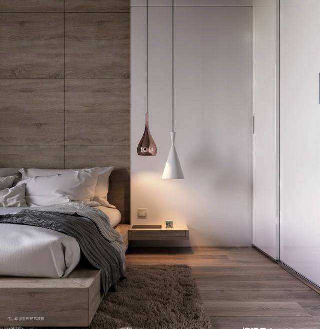 和悬空式很像,想要清新简约出床头柜设计,那大家直接利用搁板可以了,小小的几块板材,就可以打造出我们想要的卧室空间,简单但很惊艳。